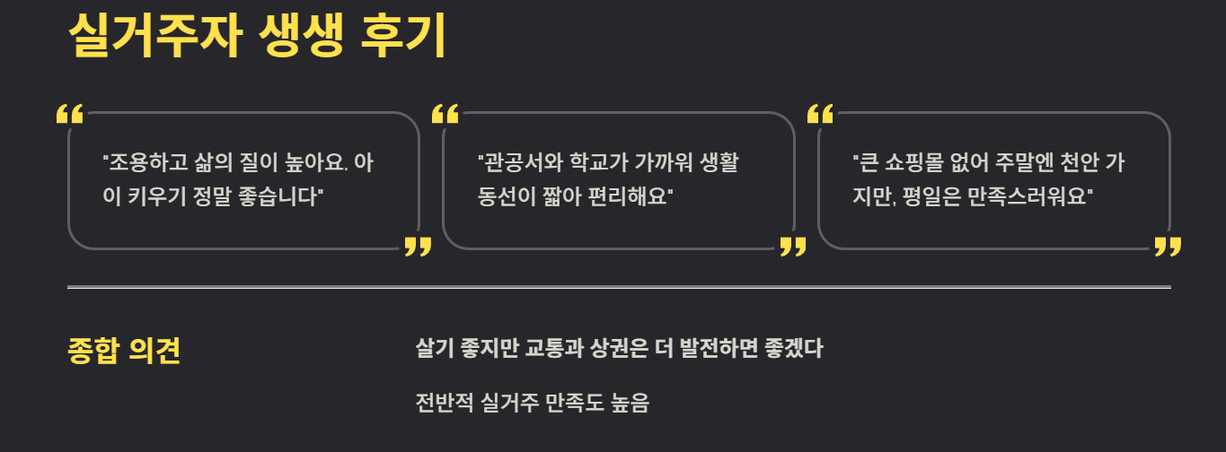 종합 의견: “살기 좋지만 교통과 상권은 더 발전하면 좋겠다”