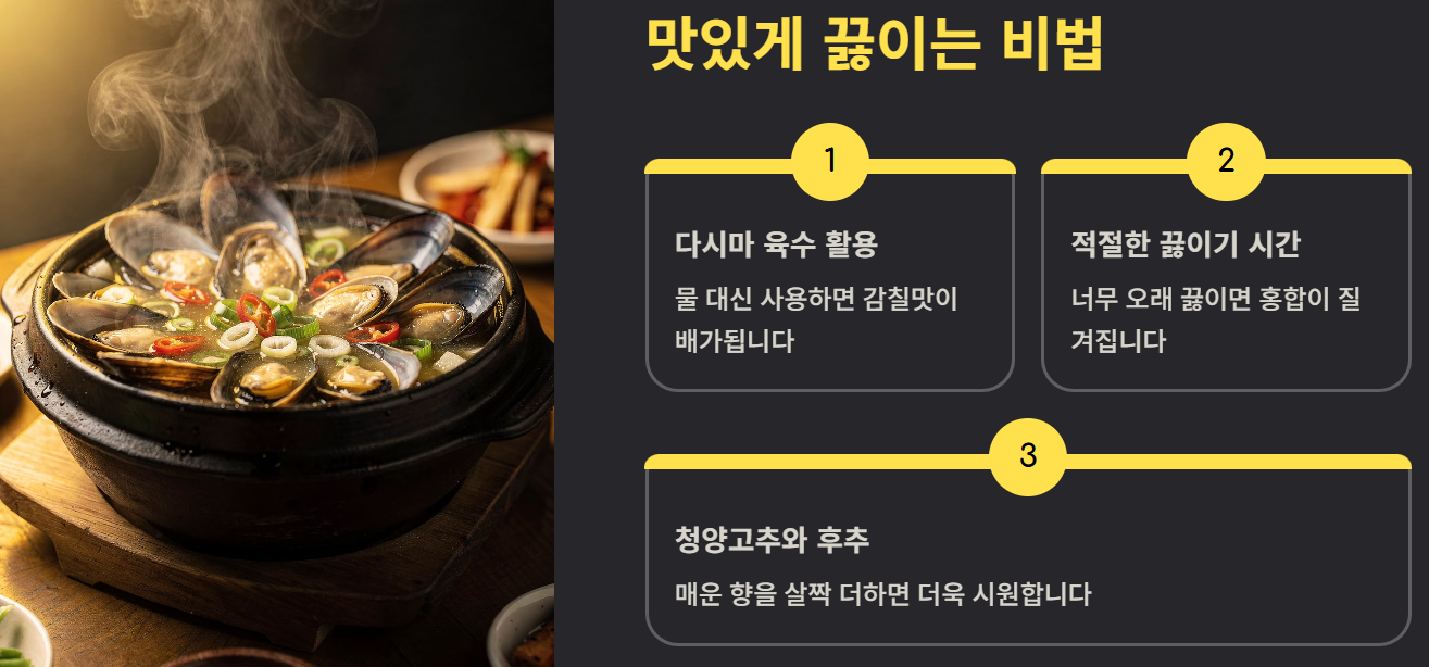 5️⃣ 홍합탕 맛있게 끓이는 비법 3가지