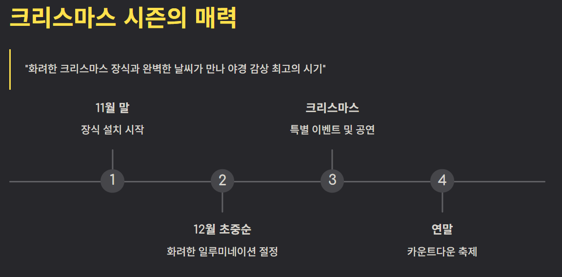 특히 12월은 크리스마스 장식이 화려해 야경 감상에 최적의 시기입니다.