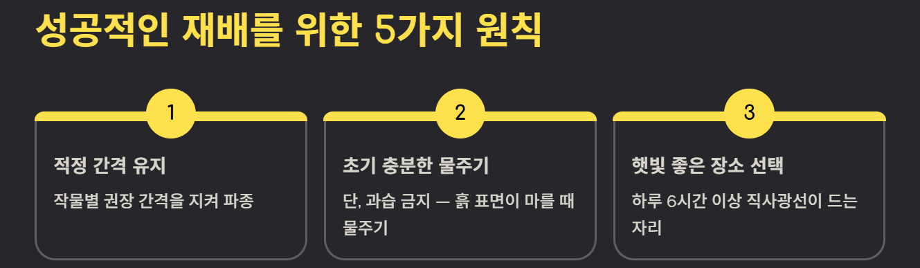둘째, 작물별 적정 간격을 유지해 파종합니다.