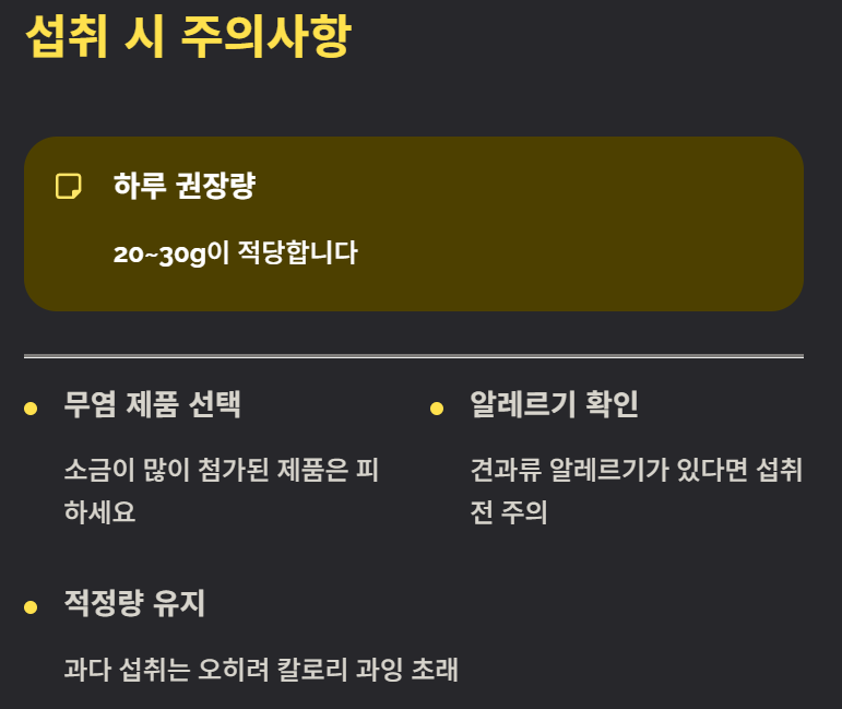 - 견과류 알레르기가 있는 분은 섭취 전 주의하세요.