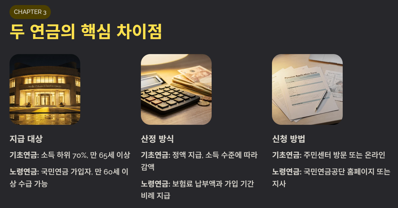 기초연금과 노령연금의 차이점을 상세히 분석하고, 신청 방법과 실제 후기를 통해 실질적인 정보를 제공합니다.