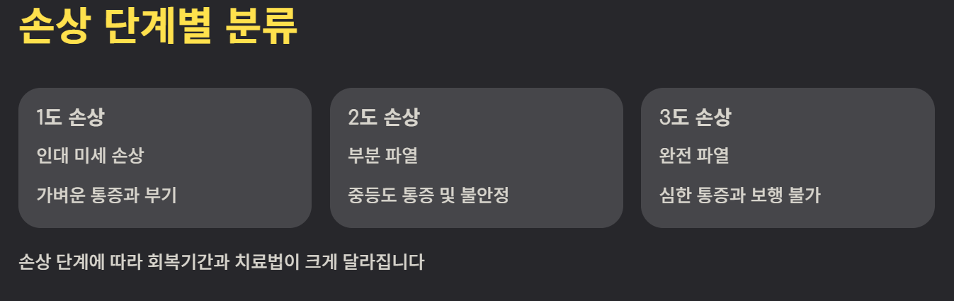 손상 단계에 따라 회복기간과 치료법이 크게 달라집니다.