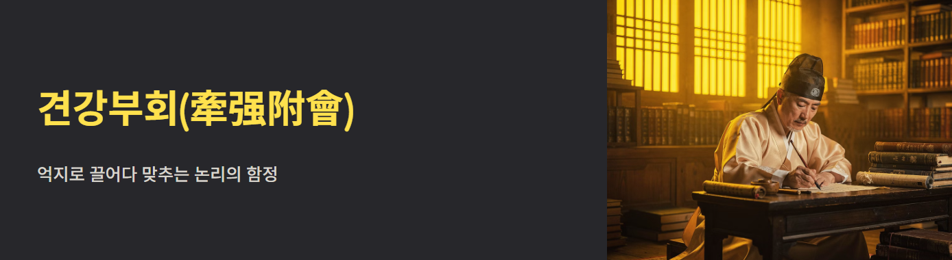 일상에서 뉴스나 칼럼, 토론 글을 보다 보면 종종 등장하는 사자성어가 있습니다. 바로 **견강부회(牽强附會)**입니다. 겉보기에는 그럴듯해 보이지만 어딘가 논리가 어색할 때 자주 쓰이는 표현인데요.