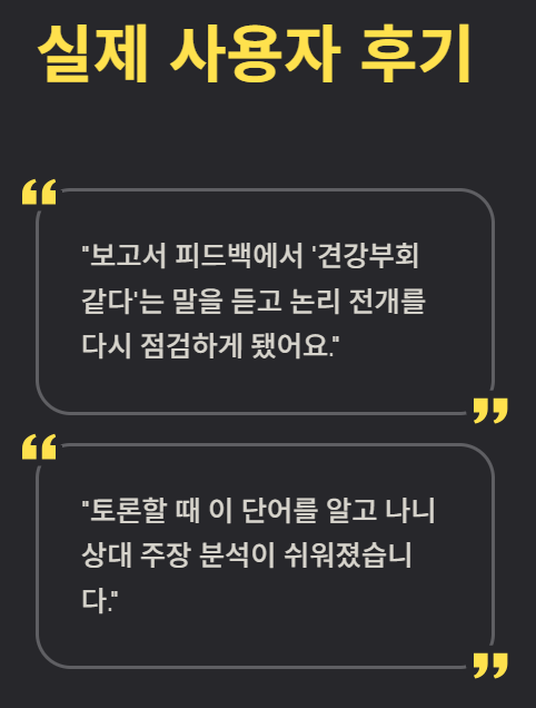 “토론할 때 이 단어를 알고 나니 상대 주장 분석이 쉬워졌습니다.”