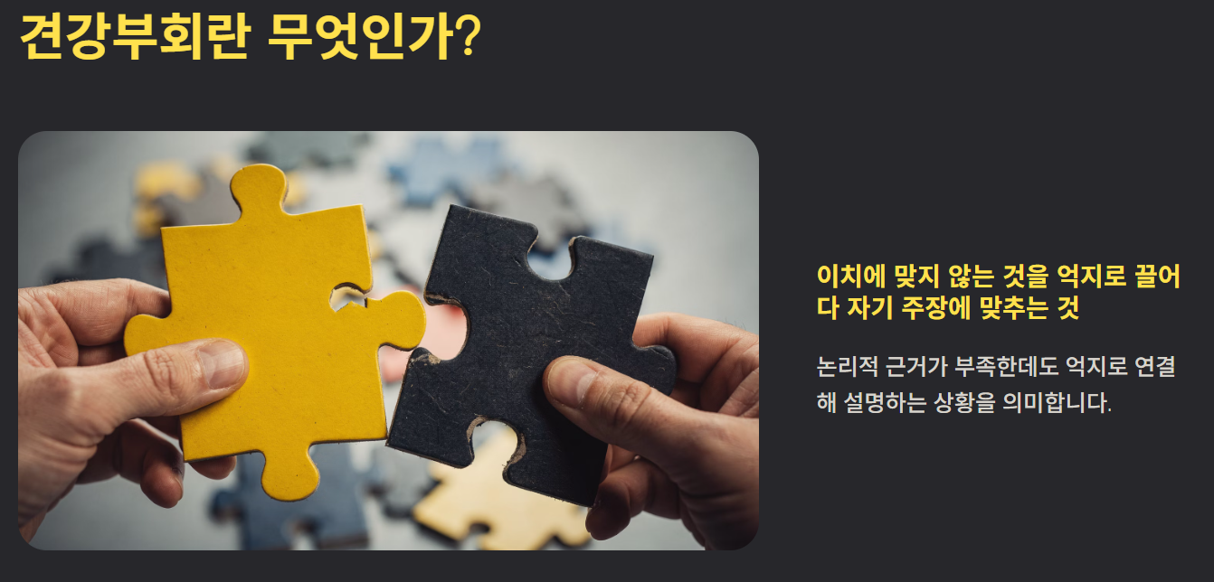 즉, 논리적 근거가 부족한데도 억지로 연결해 설명하는 상황을 말합니다.