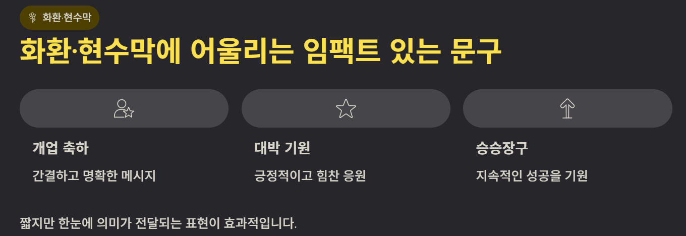 화환이나 현수막은 짧고 임팩트가 중요합니다.