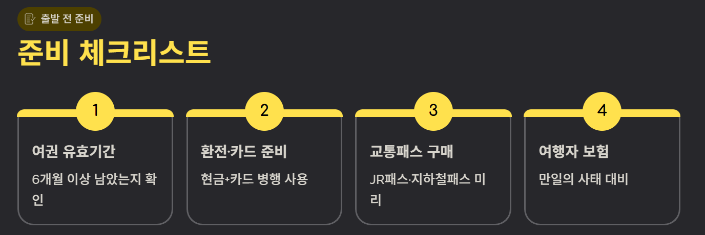 이 다섯 가지만 챙겨도 대부분 문제 없이 여행 가능합니다.