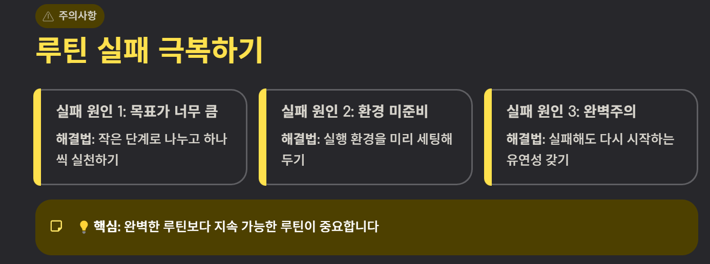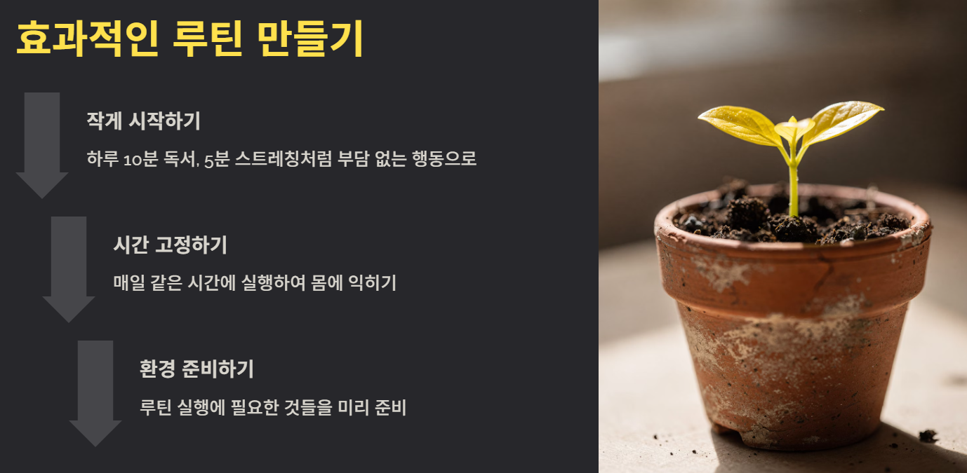 이 과정을 반복하면 루틴이 습관으로 바뀌고 삶의 효율이 높아집니다.
