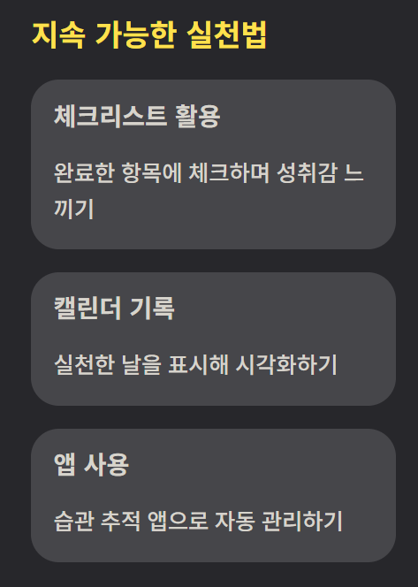 시간을 고정하고 기록하는 것이 핵심입니다. 체크리스트, 캘린더, 앱 등을 활용하면 루틴 지속률이 높아집니다.