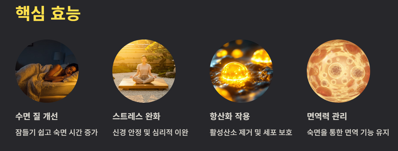 멜라토닌은 신경 안정 작용과 연관되어 있어 긴장 완화 및 심리적 안정에 긍정적인 영향을 줄 수 있습니다. 자연 유래 성분이라는 점에서 부담이 적습니다.