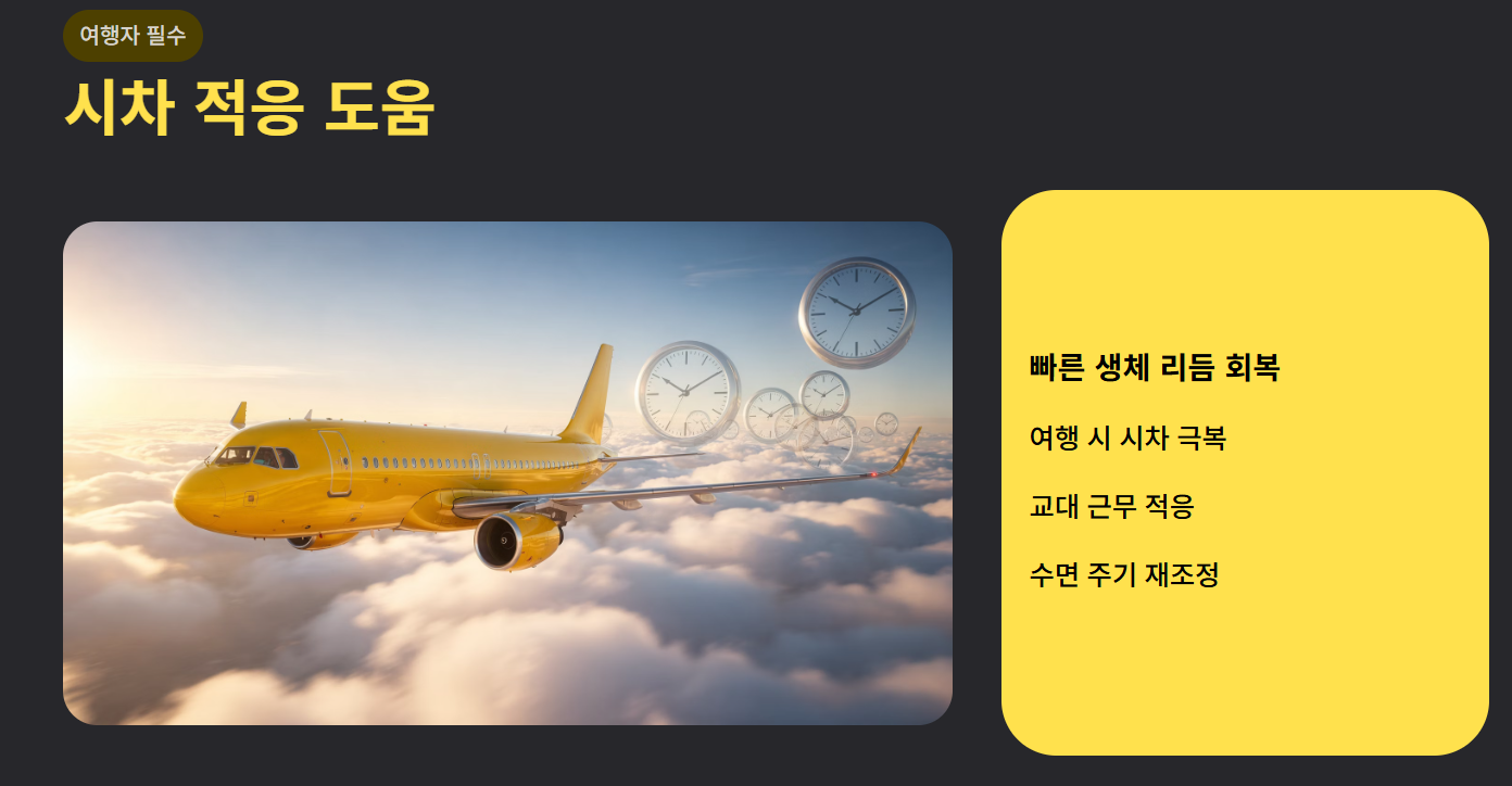 여행이나 근무 시간 변화로 생체 리듬이 깨졌을 때 수면 주기 회복을 돕는 역할을 할 수 있습니다.