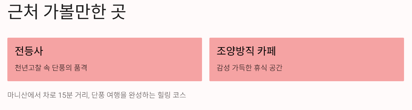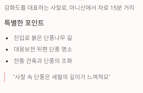 - ✅ 근처 여행지: 전등사, 조양방직 카페