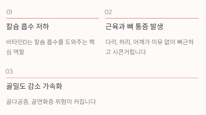 이처럼 비타민D는 뼈와 근육을 지탱하는 보이지 않는 기둥 역할을 합니다.