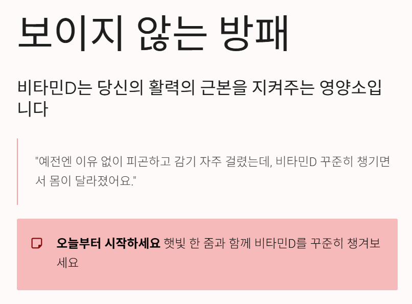 “예전엔 이유 없이 피곤하고 감기 자주 걸렸는데, 비타민D 꾸준히 챙기면서 몸이 달라졌어요.”