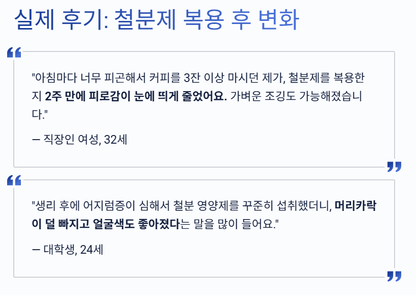 💬 실제 후기: 철분제 복용 후 달라진 변화