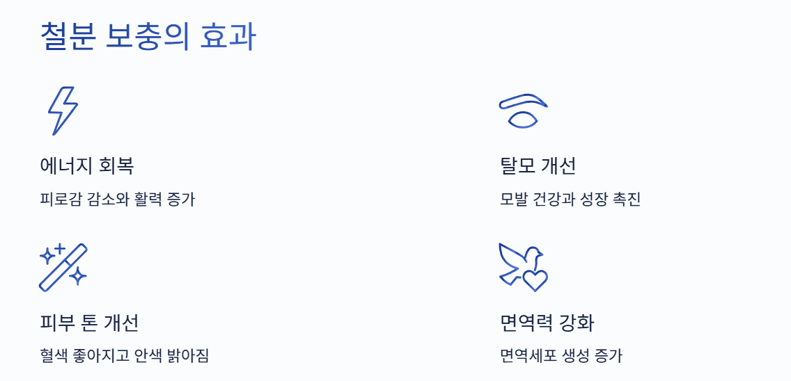 실제 후기에서도 알 수 있듯, 철분을 보충하면 에너지 회복과 탈모 개선, 피부 톤 변화까지 체감할 수 있습니다.