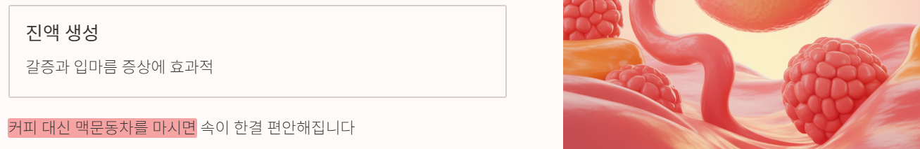 - 위점막 보호: 위산 과다, 속쓰림, 헛배 부름 완화