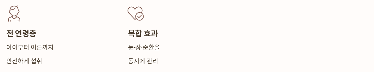 - 장기적으로 보면 눈 관리·장 건강 관리·순환 관리까지 동시에 도움