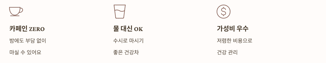 - 카페인이 없어 저녁에도 부담 없이 마시기 좋음