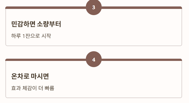 - 장 기능이 민감하면 하루 1잔부터 시작