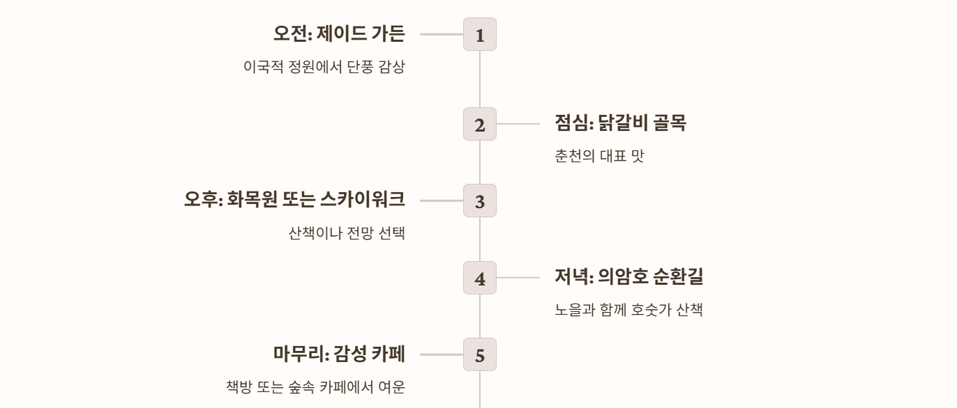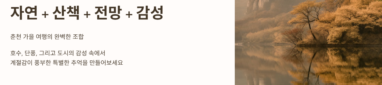 춘천의 가을은 호수, 단풍, 그리고 도시의 감성이 어우러진 참 매력적인 계절이에요.