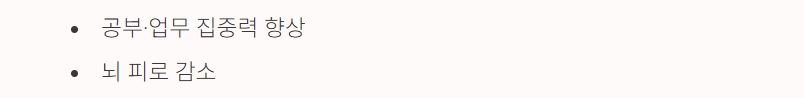 뇌로 가는 혈류를 증가시키기 때문에 집중력 향상에 도움을 줄 수 있습니다.
