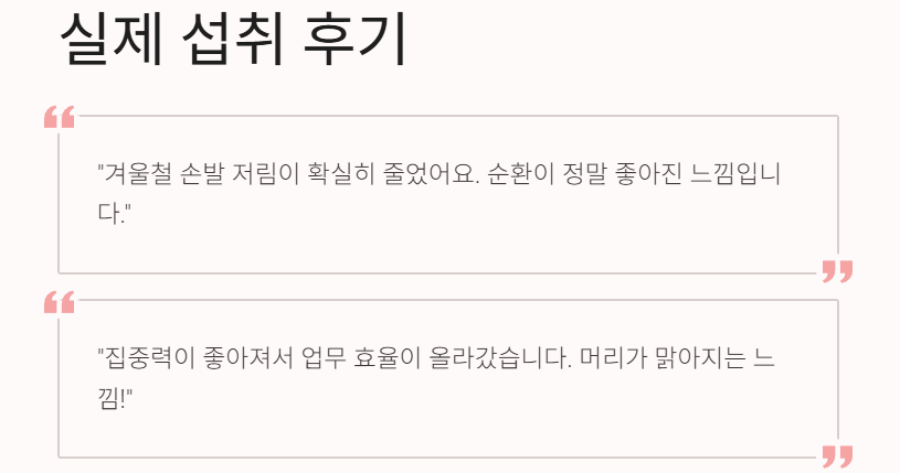 꾸준히 섭취하면 손발 저림, 말초 혈관순환 문제, 추운 날씨에 손발이 쉽게 차가워지는 사람에게 도움을 줄 수 있습니다.