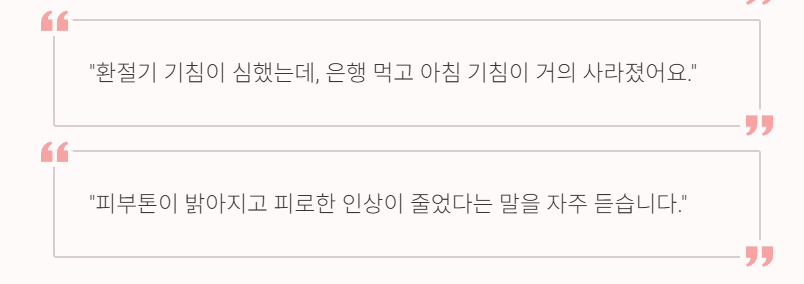 가을에 환절기만 되면 기침이 심했던 사람들이 “은행 먹고 아침 기침이 줄었다”는 후기를 많이 남깁니다.