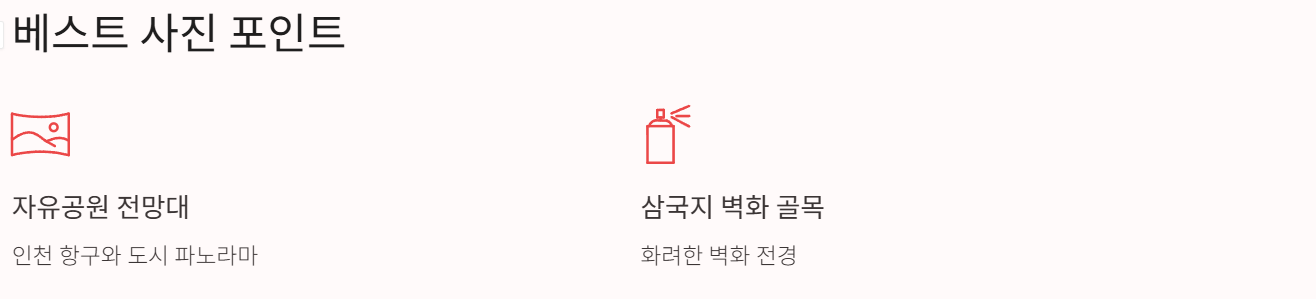 - 차이나타운 바로 옆에 위치한 동화마을로, 동화 속 캐릭터 벽화와 조형물이 골목마다 있어 사진 찍기에 좋아요.