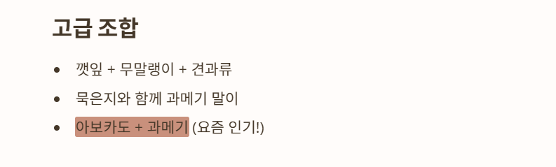 - 아보카도 + 과메기 (요즘 인기 조합)