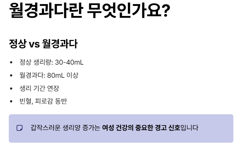 🩸 생리양이 갑자기 늘어났다면? '월경과다'의 주요 원인과 대처법