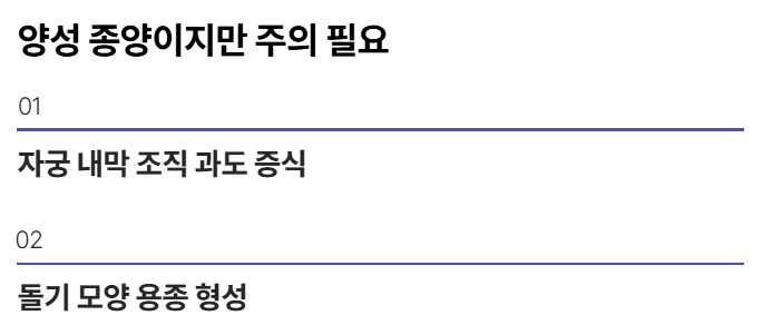 - 질환 특징: 자궁 내막 조직이 과도하게 증식하여 돌기처럼 솟아나 형성되는 양성 종양입니다.