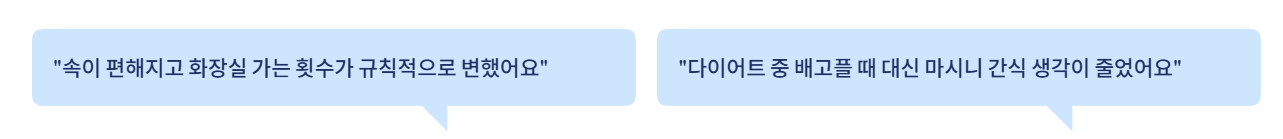 - “속이 편해지고 화장실 가는 횟수가 규칙적으로 변했다.”