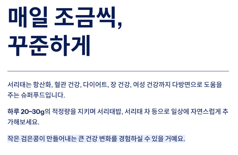 서리태는 항산화, 혈관 건강, 다이어트, 장 건강, 여성 건강까지 다양한 면에서 도움을 주는 영양 식품입니다.
