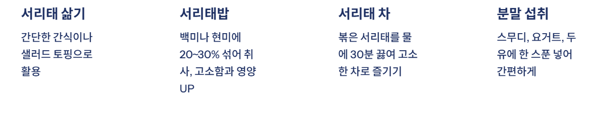 - 스무디, 요거트, 두유에 한 스푼 넣어 활용