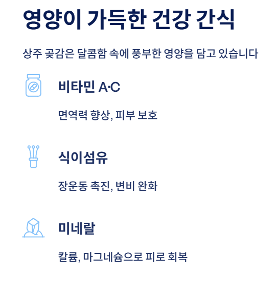 상주 곶감은 단순히 달콤한 간식이 아니라 영양 밀도 높은 전통 건강식품입니다.