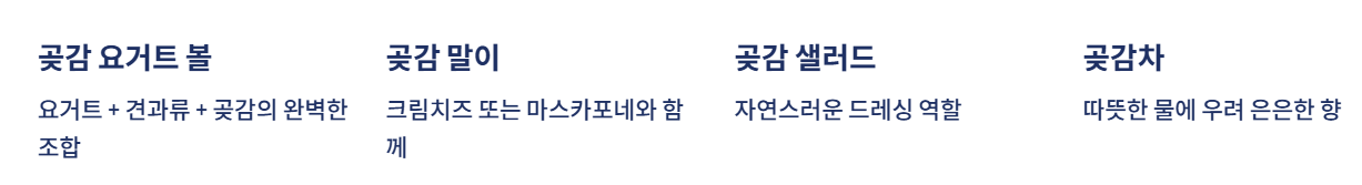 - 곶감차 : 따뜻한 물에 넣어 우려 마시면 은은한 향과 달콤함