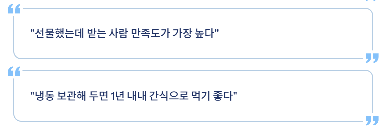 - “선물했는데 받는 사람 만족도가 가장 높다”