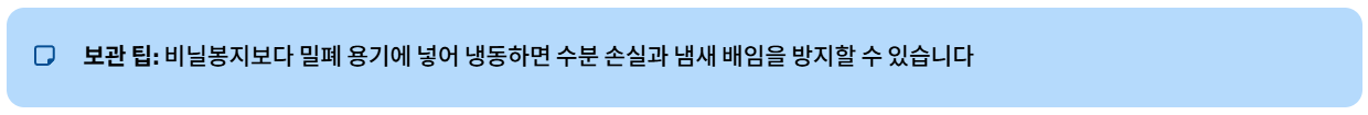 - 냉동 보관 : 가장 추천! 최대 6개월 이상 유지, 먹기 전에 10~20분 해동