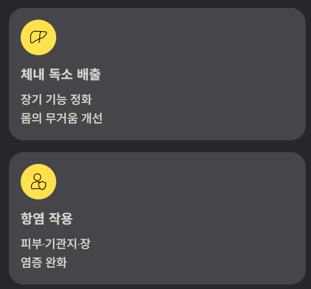 항염·항산화 효과로 몸의 면역 방어력이 개선되며 계절 변화에 따른 잔병치레 감소에 도움을 줄 수 있습니다. 직접적으로 면역을 높이기보다 염증 감소 → 면역 부담 감소의 방식으로 작용한다고 볼 수 있습니다.