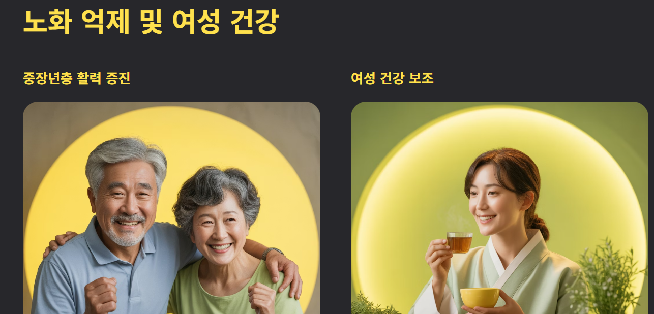 녹용과 당귀는 전통적으로 노화 방지와 기혈 순환을 돕는 재료로 널리 사용되었습니다. 공진단은 신체의 균형을 맞춰 노화를 늦추고 활력을 유지하는 데 도움을 준다고 전해져 중장년층에게도 인기가 많습니다.