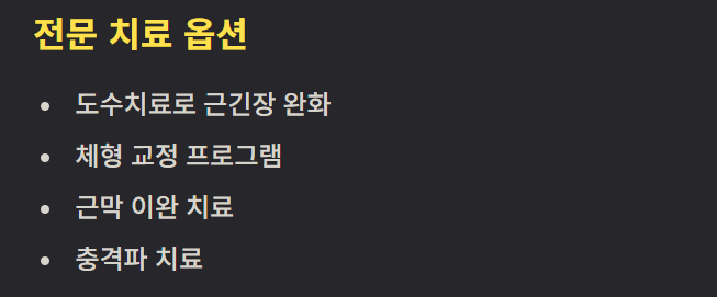 병원에서는 도수치료, 체형 교정, 근막 이완, 충격파 치료 등을 통해 근긴장을 완화하고 자세 패턴을 바로잡는 치료를 진행합니다.