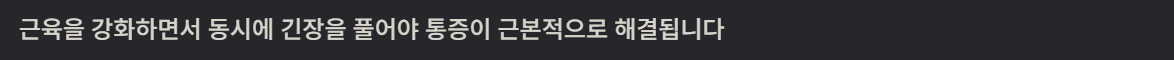 → 강화 운동 + 스트레칭이 같이 이루어져야 통증이 줄어듭니다.