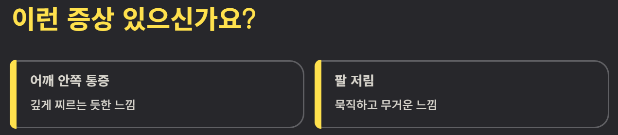 – 어깨 안쪽으로 깊게 찌르는 듯한 통증