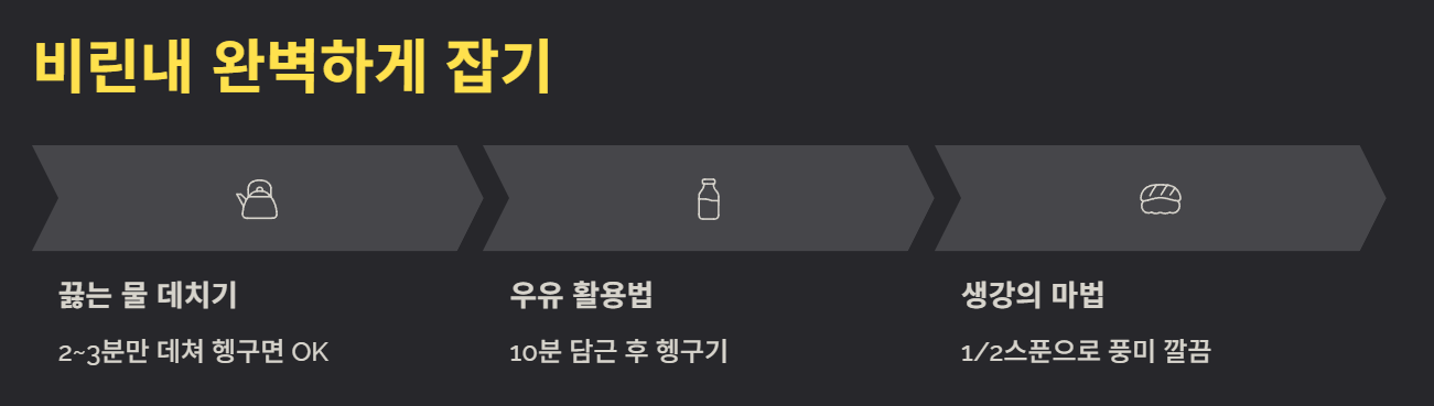또는 우유에 10분 정도 담갔다가 헹구면 잡내가 거의 사라집니다.