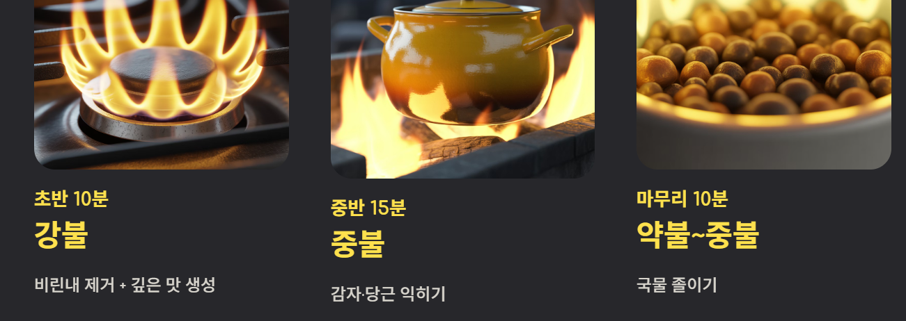 초반 10분은 강불: 비린내 제거 + 깊은 맛 생성