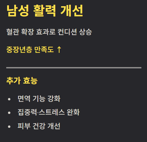 - “남성 활력 쪽으로 체감이 분명하다.”