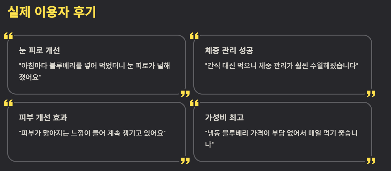 - “냉동 블루베리 가격이 부담 없어서 매일 먹기 좋습니다.”
