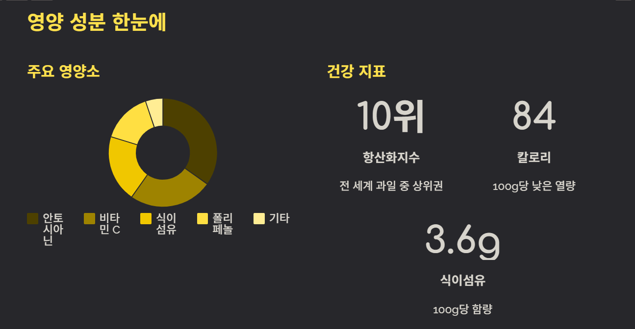 특히 안토시아닌을 중심으로 한 항산화 효과는 눈 건강, 혈관 관리, 노화 방지에 폭넓은 도움을 주며 많은 사람들이 건강식으로 꾸준히 찾고 있습니다.